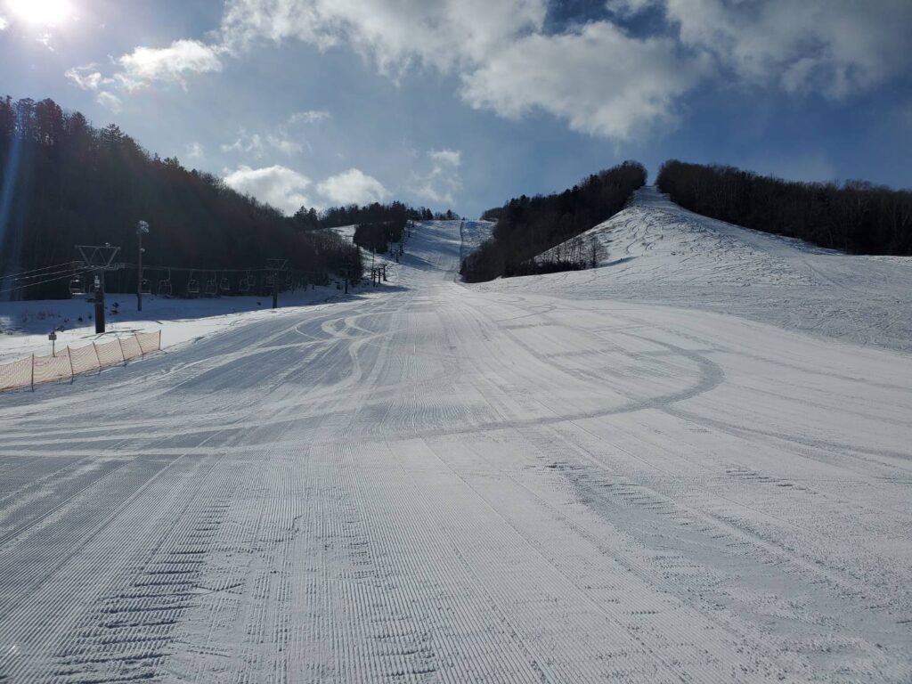 ここの魅力は、なんといっても見事に整地されたピステンバーンです。 朝一番の引き締まった雪面。エッジがしっかりと噛み合う感触が足裏から伝わってきます。