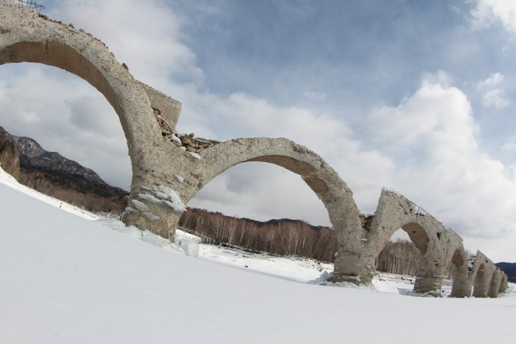 古代ローマの遺跡を彷彿とさせる、連続した美しいアーチ。 ボロボロに崩れ落ちたコンクリートの肌は、過酷な自然の中で戦い続けてきた証です。 ファインダー越しに覗くと、そこには「美しさ」と同時に、いつかは消えてしまう「儚さ」が同居していました。